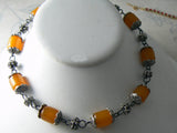 Vintage Butterscotch Amber Bakelite Egg Yolk Trade Bead Necklace Berber Faturan. Measures about 17 1/4" long. The bakelite beads measure about 5/8" from hole to hole and about 1/2" wide.