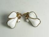Vintage Crown Trifari Milk Glass Fruit Pear Clip Earrings
