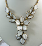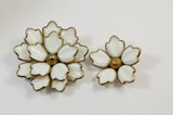 Vintage Crown Trifari Milk Glass Parure, Necklace, Clip Earrings, Flower Pins