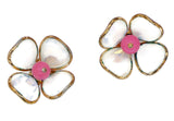 Vintage Crown Trifari Poured Glass Flower Clip Earrings