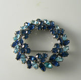 Vintage Crown Trifari Sapphire Blue Rhinestone Brooch