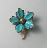 Vintage Crown Trifari Signed Turquoise Molded Glass Dogwood Flower Brooch. Signed Crown Trifari.