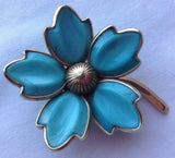Vintage Crown Trifari Signed Turquoise Molded Dogwood Flower Brooch