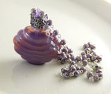 Vintage Czech Glass Perfume Bottle Necklace, Opalescent Lavender, Purple Rhinestones