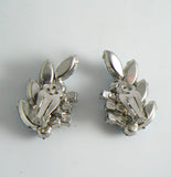 Gorgeous vintage D&E Juliana silver plate clip earrings. The navette rhinestones are ice blue, accented by brilliant medium ice blue rhinestones. Measures 1 5/8" x 1¼". Excellent condition.... no wear to the silver finish and no missing, dull or dead stones.