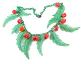 Vintage Early Soft Plastic Celluloid Leaves and Roses Necklace