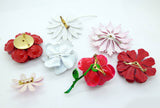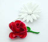 Vintage Enamel Flower Pins, Brooch Lot, Reds and Whites