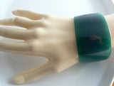 Vintage Extra Wide Bakelite Bangle Bracelet Translucent Turquoise Blue