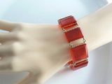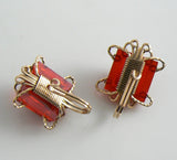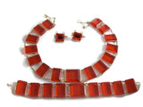 Vintage Gold Filled Red Lucite Panel Necklace Bracelet Earrings