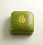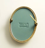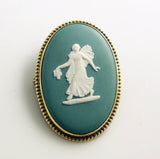 Vintage green Jasperware oval brooch set in sterling silver. In original Wedgwood made in England box. The brooch is a dark teal color, very pretty. Depicts the Goddess Flora. Measures 1 1/2" by 1 1/4" Very good condition.