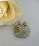 Vintage Green Marbled Guillouche Enamel Apple Brooch