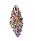 Vintage Half Finger Ring Citrine, Sapphire and Tourmaline 14k White Gold over Sterling Silver Size 9.5 Precious Oval Cut stones, 7mm by 5mm. The ring measures 60mm by 25mm. Excellent condition.