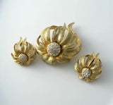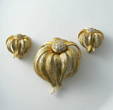 Hattie Carnegie Brushed Gold Rhinestone Cone-flower Demi Parure