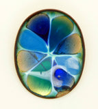 Vintage Hogan Bolas Modernist Enamel on Copper Pin. This Pin is made with iridescent enamel on copper in shades of blue and green. Signed Hogan Bolas. Measures 1 3/4" by 1 1/4". Very good condition, it does have a nick at the bottom. Any other irregularities are part of the design.