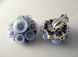 Vintage Hollycraft Blue Lucite Blue Clear Crystal Clip Earrings