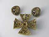 Vintage Hollycraft Earrings And Married Maltese Cross Brooch