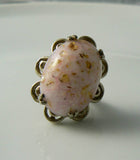 Vintage Hollycraft Huge Pink Cabochon Adjustable Ring
