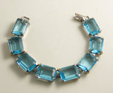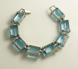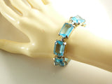 Vintage Judy Lee large aqua blue glass open back rhinestone bracelet