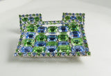 Vintage Kramer Pastel Green Blue Rhinestone Brooch Earring Demi Set.