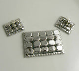 Vintage Kramer Pastel Green Blue Rhinestone Brooch Earring Demi Set. Pastel green and blue rhinestones set in silver tone metal. The brooch is signed Kramer of New York. The earrings are signed also but the signature is very worn. Measures 2 1/4" by 1 1/2" Very good condition.