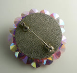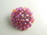 Vintage Layered Pink Crystal Brooch. Each crystal disc measures 10mm in diameter with the brooch measuring 2" or 51mm in diameter. The aurora borealis finish to the back of the crystals adds to the sparkle. Very good condition.