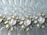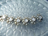 Vintage Ledo Givre Glass Bracelet. Hi end bracelet signed Ledo 1958. All prong set Givre glass stones set in gold tone metal. Measures 7" not including fold over clasp and is 1 1/4" wide. Excellent vintage condition.