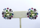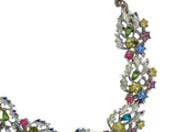 Vintage Lisner Pastel Rhinestone Necklace and Earrings. Set in silver tone metal. Both the screw back clip earrings and necklace are signed Lisner. The necklace measures 17" in length and the earrings are 1" in diameter. Excellent vintage condition. circa 1960's.
