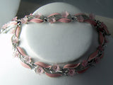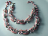 Vintage Lisner Pink Silver tone and Enamel Parure