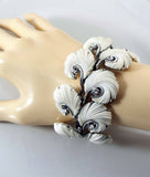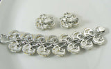 Vintage Lisner White Molded Feather Leaf Rhinestone Bracelet and Clip Earrings