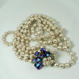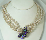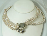 Vintage Miriam Haskell 3 Strand Baroque Pearl Rhinestone Clasp Necklace