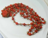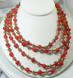 Vintage Miriam Haskell 4 Strand Red and Gold Glass Bead Necklace