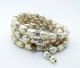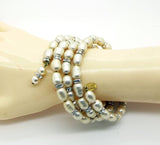 Vintage Miriam Haskell Baroque Glass Pearl and Rhinestone Rondelle Wrap Bracelet