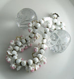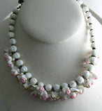 Vintage Miriam Haskell Pink and White Dangling Glass Flower Necklace
