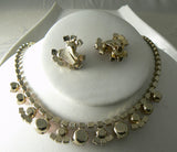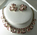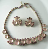 Vintage Necklace Earring Pink Glass Rhinestone Earring Set