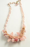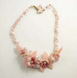 Vintage Pate de Verre Art Glass Pink Flower Necklace