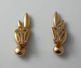 Vintage pink and clear rhinestone clip on earrings on gold tone metal. Each earring is approximately 1/2" wide and 1 1/2" long. A little tarnish and wear on the gold tone metal.