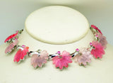 Vintage Pink Carved Lucite Rhinestone Necklace and Clip Earrings