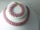 Vintage Pink Glass Prong Set Necklace And Bracelet