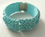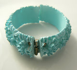 Vintage Rare Blue Carved Celluloid Clamper Bracelet