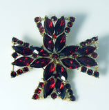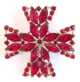 DAZZLING vintage red rhinestone brooch by Weiss. The brooch is in the form of a Maltese Cross and measures approx 2 3/8" x 2 3/8". It is signed "WEISS" on the underside and is in excellent condition