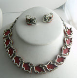 Vintage Red Thermoset Leaves Necklace Earring Set