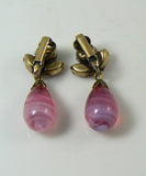 Vintage Regency Pink Art Glass Dangle Clip Earrings