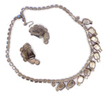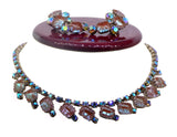 Vintage Saphiret and AB Rhinestone Necklace and Clip Earrings