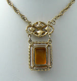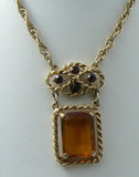 Vintage Sarah Coventry Wild Honey Amber Necklace & Bracelet Set. Necklace measures 19", pendant measures 1/14" x 1 1/4". Bracelet measures 7" in length and the stones measure 3/4" x 3/4"
