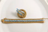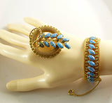 Vintage signed Hobe Turquoise stone mesh bracelet and pin set