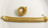 Vintage signed Hobe Turquoise stone mesh bracelet and pin set. The brooch is signed Hobe and the bracelet is unsigned but very obviously a set. This has turquoise stone cabs and light jonquil rhinestones. Set in gold tone mesh. The bracelet is 7" long and 3/4" wide and the clasp is secure and it has a safety chain. The matching pin is 2" Excellent condition.