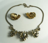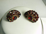 Vintage Signed Schreiner of NY Ruby Red Clip Earrings with Married Necklace