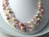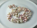 • Vendome 2 Strand Pink White Beaded Crystal Necklace And Earrings - Vintage Lane Jewelry