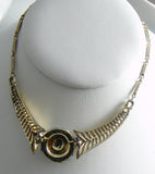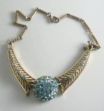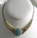Vintage Sky Blue Rhinestone Gold Tone Chain Link Choker Necklace