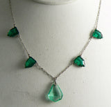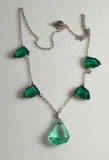 Vintage Sterling Silver Art Deco Emerald Green Glass Necklace